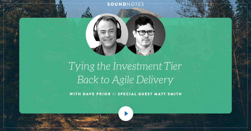 In this episode of SoundNotes, LeadingAgile Managing Consultant, Matt Smith, joins Dave for a conversation about why we need to make sure that the investment made in portfolio tiers of the organization ties directly back to Agile delivery, and how we can make sure that is happening. If you are an executive who has responsibility for making decisions about where and how the organization makes strategic investments across the portfolio, this interview may expose some areas of focus that you may want to give more attention.